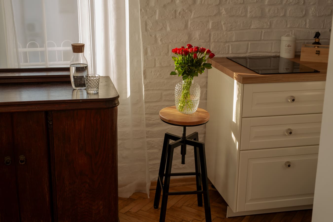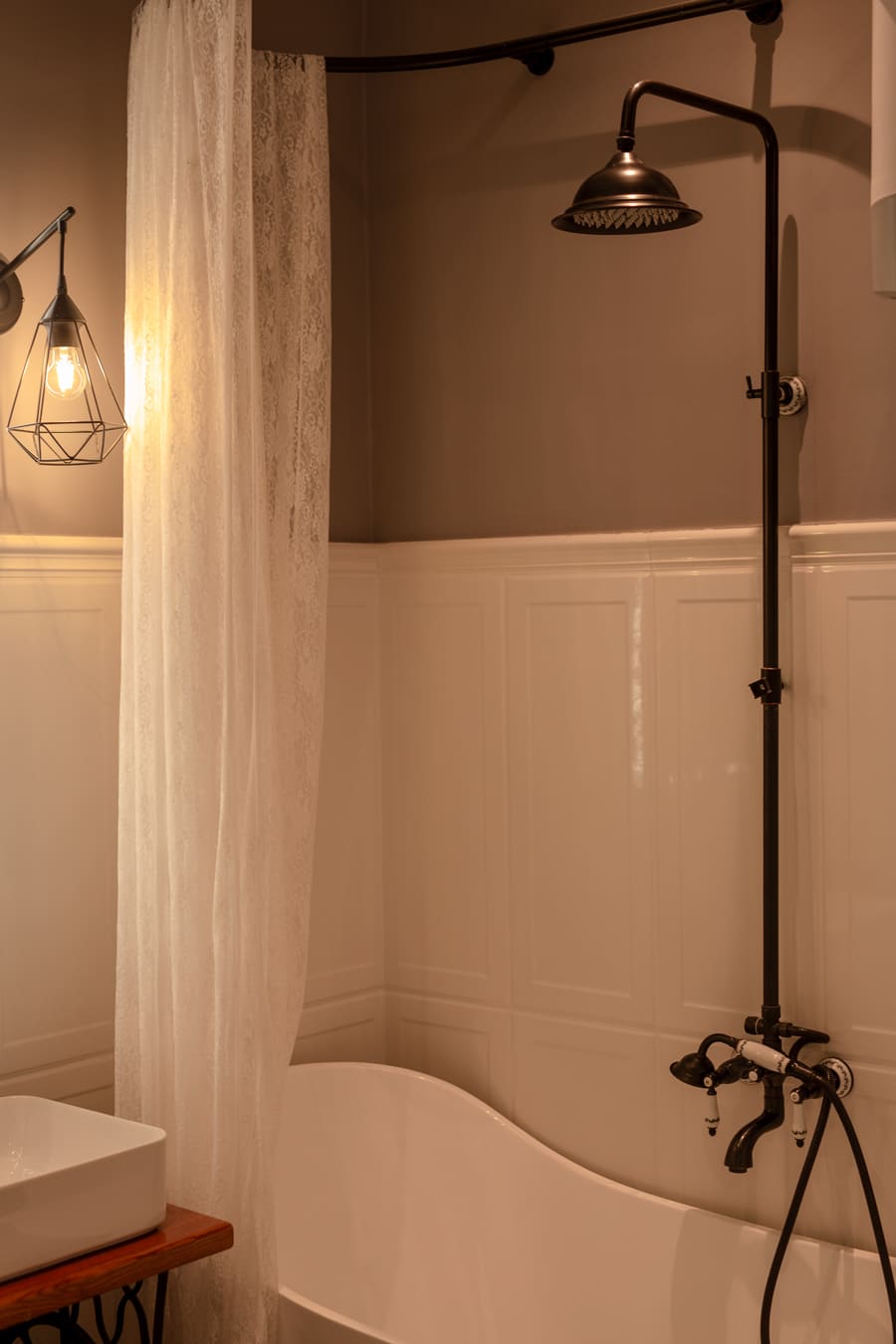 Oprócz głównego pomieszczenia urządzonego w stylu retro z industrialnymi niuansami, studio posiada łazienkę z piękną wanną oraz duży taras, który również oddajemy do Waszej dyspozycji.